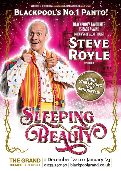 The Blackpool Grand Theatre 2022/23 pantomime, Sleeping Beauty is presented by Martin Dodd for UK Productions Ltd, who have been presenting the Christmas pantomime at Blackpool’s Grand Theatre since 1996. Other productions presented at The Grand by UK Productions include Legally Blonde the Musical, Disney’s Beauty and the Beast the Musical, The Kite Runner, 42nd Street, South Pacific, Carousel, Fiddler on the Roof, Oklahoma! Seven Brides for Seven Brothers and Anything Goes.