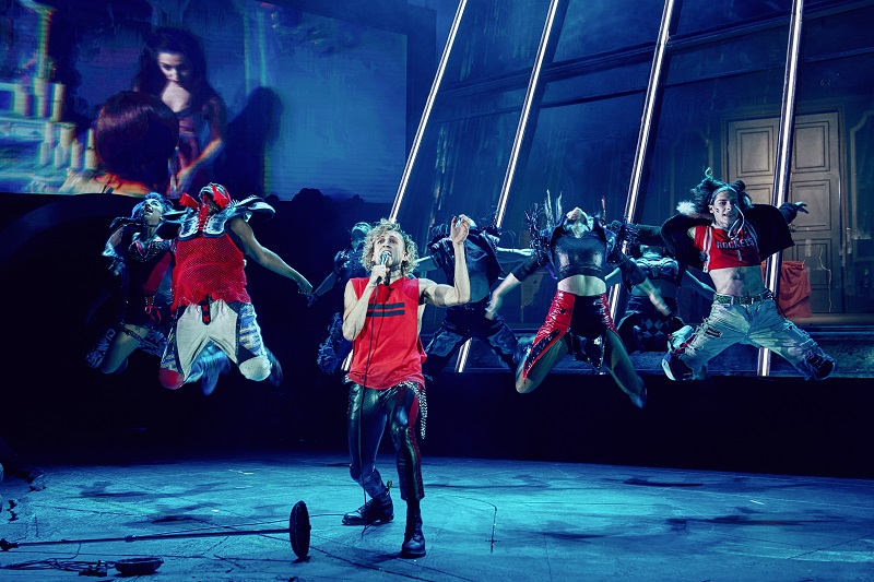 The show is set in the Dystopian city of Obsidian (although this is never mentioned to the audience) and the story of Strat, who is one of ‘The Lost’ and Raven, the daughter of the city’s leader – Falco. They have seen each other briefly, but have fallen madly in love with each other, much to Falco’s disapproval. The other issue is that Strat has been frozen and will remain 18 forever, no matter how old Raven becomes. It is not just Strat that Falco disapproves of it is all of The Lost and he tries as hard as he can to remove them from the streets and subways of the city. Act one was extremely difficult to follow, as none of the surroundings were explained. From the set design and lighting, it was easy to guess that it was a dystopian setting, but apart from that we were clueless. Act two, however was easier to follow, whether or not because we googled the plot in the interval, who knows?!