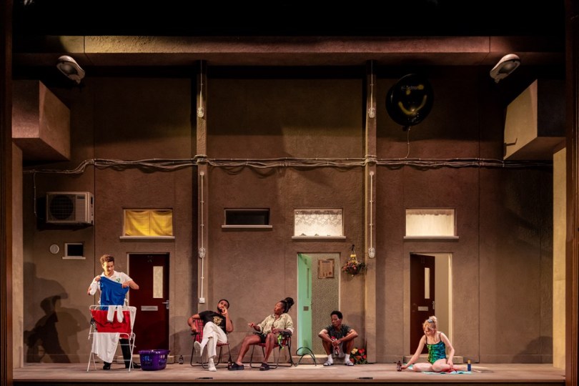 Marks brings a vulnerability to a tough cookie who worked every hour to make sure her beloved son has a chance to leave the estate, and Trieve Blackwood-Cambridge is great fun as well-meaning, but naïve, posho Tony struggling to make sense of a very different world to his normal milieu. Scarlett Rayner as Leah is comedy gold belting out Mama’s hits, but does get to the core of a damaged young woman who knows her prospects are bleak, yet remains a steadfast friend to the boys.