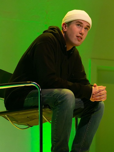 Aided by a smart set, and lighting design from James Merrington that highlights the sense of isolation, and clever touches with props (one teen swigs Red Bull, another, Capri Sun), each performer creates a distinctive character and there isn’t a weak link among them as they either seek to either goad or support Jim through his depression.