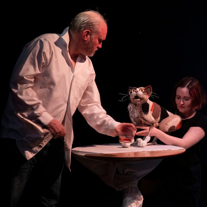 Our final offering has Kathy (Isabel Ford) as a recently deceased woman watching her brother Gaz (Toby Hadoke) return from her funeral to discover she has left her home to Mrs Proops, her feline companion; Gaz then inheriting upon the moggies demise. She watches, frustrated, as he plans to poison before relenting and understanding his sisters desire for him to engage and take responsibility for another living creature. This redemption is partially achieved in the writing, but Gaz needed more malign intent at the outset to successfully demonstrate the change by the conclusion. The puppetry work of Kery Ely was excellent, and Ford was outstanding as Kathy, with a stronger conclusion this short would shine.