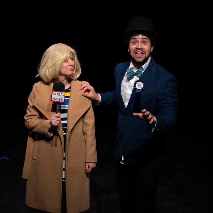 Writer Joyce Branagh takes the lead as the eponymous Isobel, an Aldi shop assistant who decides to stand for election to parliament against the Conservative forces of darkness embodied by Rory Cheese Bogg (Callum Sim). Elements of Victoria Woodesque writing pepper the script and whilst the political satire is broad and lacking the barbed sharpness it intends, the targets are easily hit. The piece works best when the character interpretations are to the fore, Sim is a strong comedy presence, especially as ‘Scouse Caff Kath’ and Bogg with Joanne Dakin in a series of bizarre wigs providing excellent support. The audience vote at the end provided a tight finale and left us with the entreaty to SFAABNTE (Stop Fucking About And Just Be Nice To Eachother), something upon which we can all agree.