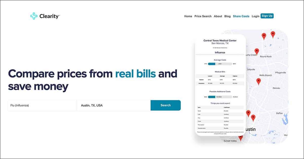 Clearity Health is a healthcare pricing transparency platform that aims to help patients understand and prepare for emergency room visit costs.