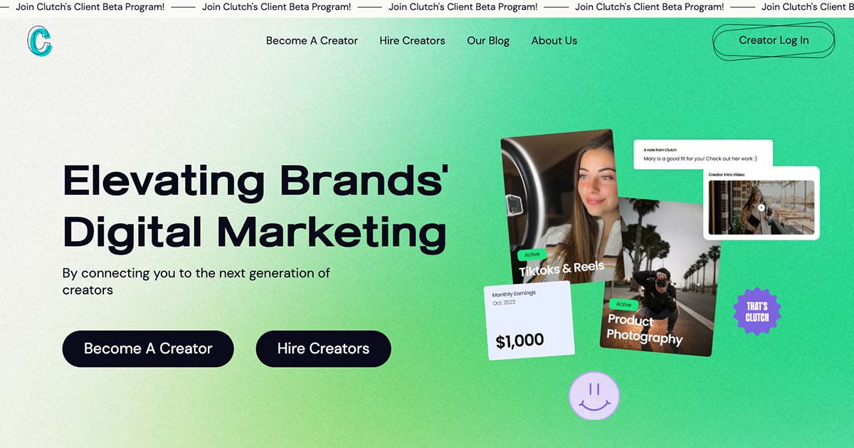 Clutch is a digital marketing agency that helps brands and businesses connect and utilize the creator economy.
