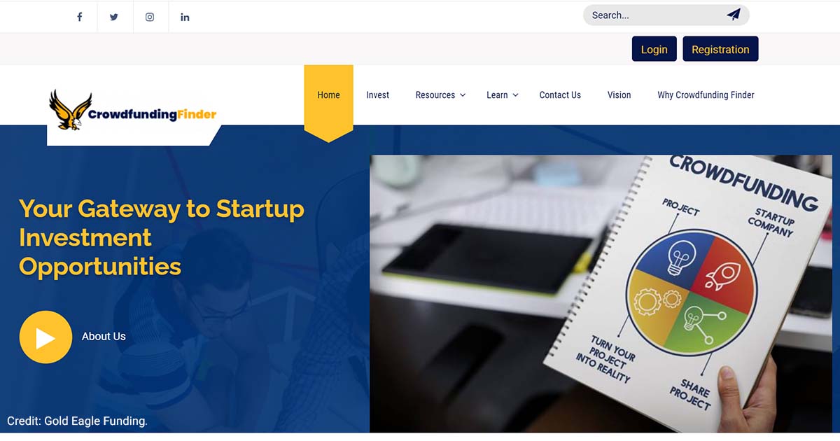 Gold Eagle Funding is a fintech startup leveraging the insights for big data and analytics to provide crowdfunding investors with the ability to make more educated and impactful investment decisions through their site, Crowdfunding Finder.