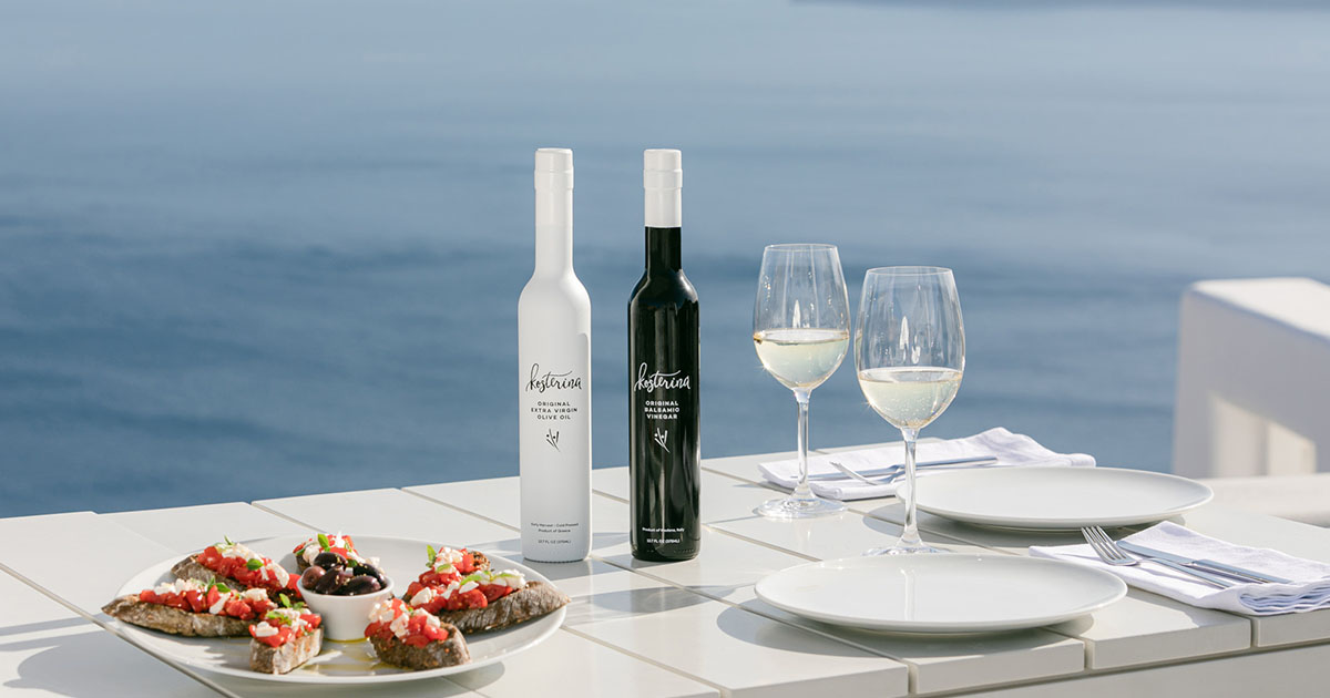 “My first name is Katerina, and my husband’s is Kostas, so Kosterina was the relationship shorthand our friends gave us — and eventually even our wedding hashtag. I started the brand, Kosterina, after our wedding and realized not only was it a beautiful representation of our Greek names and unity that helped create the brand, but I also already owned [the] URL. I’m reminded of our story every time I hear the brand name or read the label, as family and the Mediterranean lifestyle are at the bedrock of the brand.”