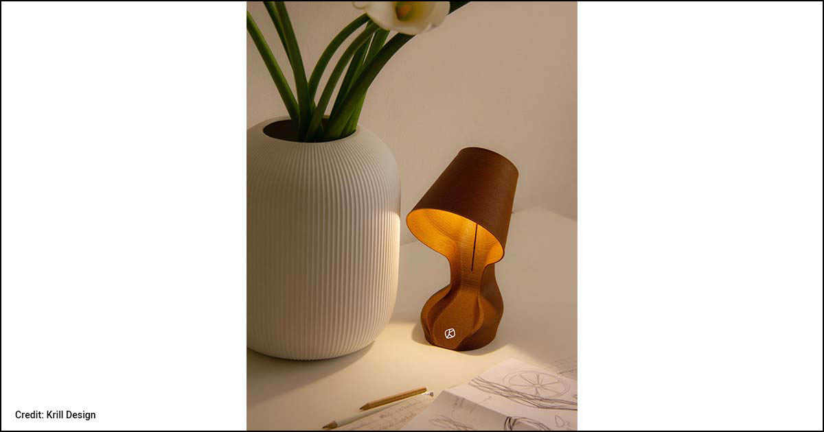 Krill Design is an Italy-based sustainable design startup. Their primary product, Ohmie: The Orange Lamp, is a lamp made of Sicilian orange peels.