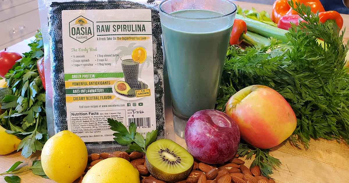 “Oasia Farms is a play on the word ‘oasis’ because spirulina is a desert crop that grows in the water. Our ponds are a little desert oasis!”