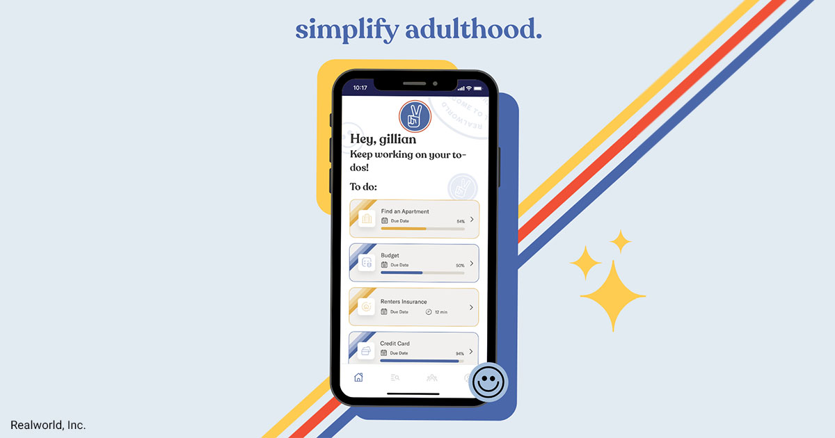 Realworld is a mobile app and web platform simplifying the transition from college into the working world for the next generation of adults. Our personalized, step-by-step playbook helps members navigate decisions like signing a lease, building a budget, and filling out first-day employer paperwork.