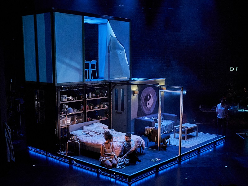 The set, like Kirkwood’s writing and Lucy Morrison’s production, is clever, fluid and dynamic. The crew have the task of manually revolving the set and dealing with props and there’s really smart, integrated use of CCTV, social media posts and voice-overs. Jake Davies and Siena Kelly are terrific as Noah and Celeste, totally believable in their relationship and their descent into madness/rapture. The only disconnect comes in an occasional jarring tone between the rom-com jokes and the serious issues.